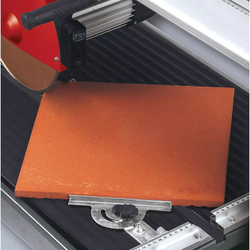 A TE-SC 570 L kővágó gép egy kiváló minőségű és megbízható készülék, amellyel gyorsan és pontosan vágható kő és beton, tégla, valamint csempe. Az erős, 1500 wattos motor megfelelő teljesítményt biztosít a 250 mm átmérőjű turbó gyémánt vágókorongnak, így folyamatosan vághat vele olyan kemény anyagokat, pl. gránitot vagy a márványt is. A TE-SC 570 L egy 0° és 45° közötti tartományban fokozatmentesen forgatható motorfejjel és négyszeres golyóscsapágyazású motorvezetővel, valamint különösen hosszú, 570 mm-es húzáshosszal rendelkezik. A fokra pontosan beállítható, csavarodásbiztos alumínium szögütközővel néhány kézmozdulattal elvégezhető a gér-, duplagér vagy jolly vágás. A motorfej mozgó csapágyazása lehetővé teszi merülővágások kivitelezését is. A nagy, csúszásmentes, gumiborítású munkaasztalt egy rendkívül stabil állványra építették. A levehető lézer pontosan kijelöli a vágás helyét a munkadarabon, így biztos lehet abban, hogy az elvégzett munka mindig precíz, a végeredmény pedig tökéletes lesz. A vágókorong hűtéséhez a beépített vízszivattyú szállítja a vizet az erős, acéllemez kádból.
