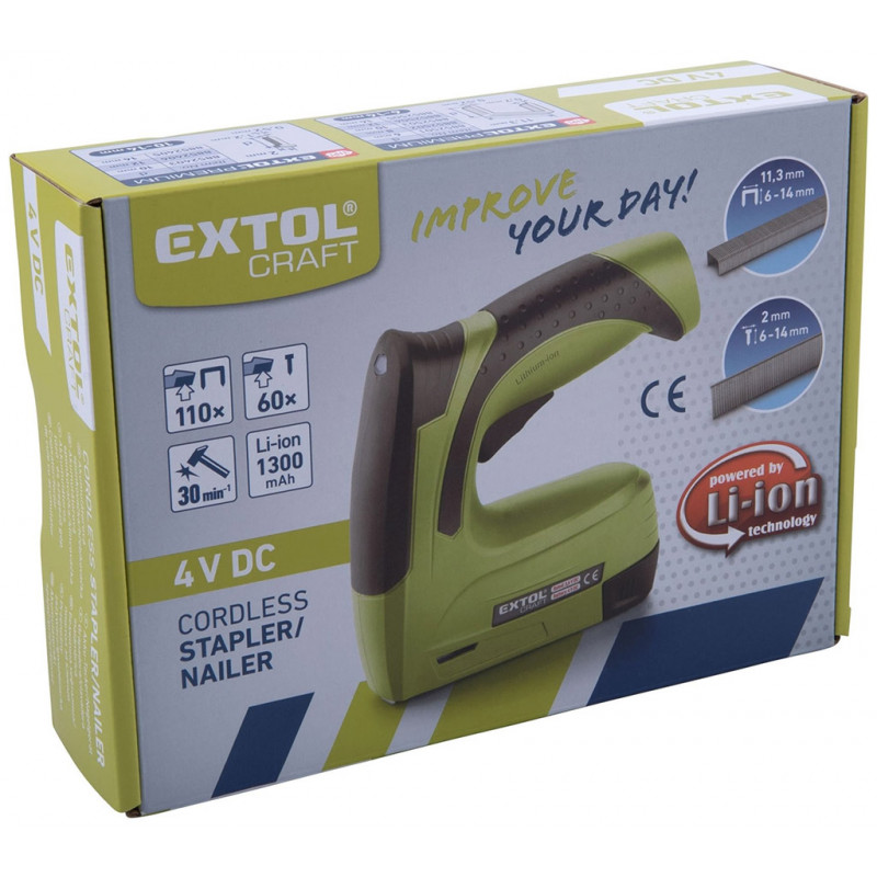 - Pro odeslání do Česka navštivte EXTOL CRAFT sponkovačka/hřebíkovačka aku, 4V Li-ion, 1300mAh, USB nabíjení 402901