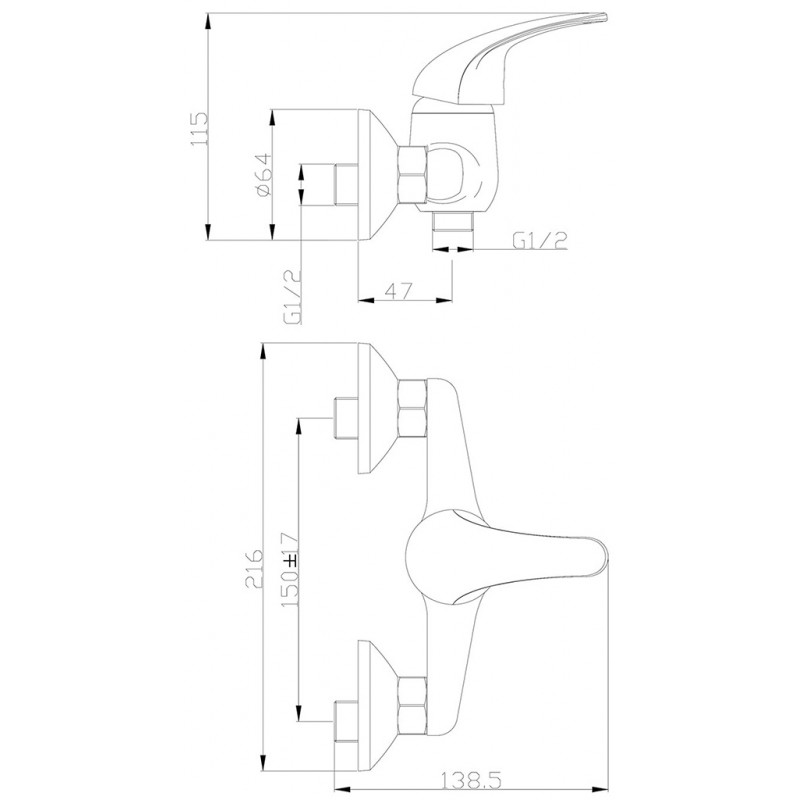 BALLETTO zuhany csaptelep 150mm 81105Zuhany csaptelep 35mm, 150mm-es, falra szerelhető, egykaros, fényes, kerámia betéttel, tömlő és fej nélkül