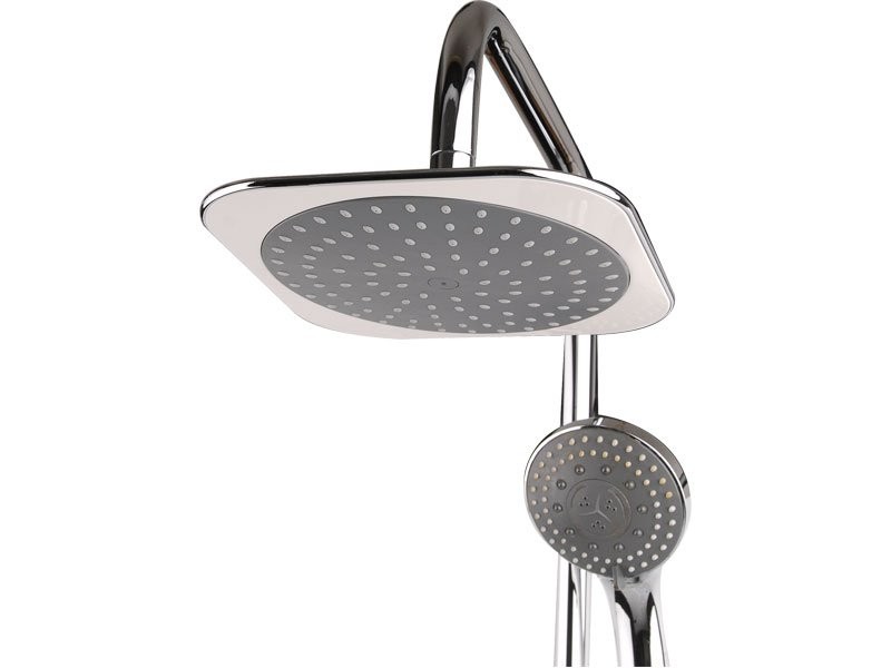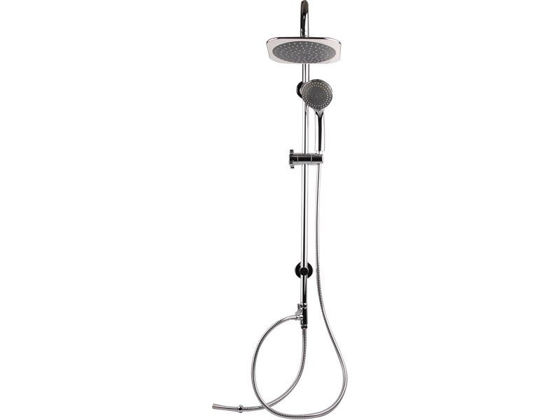 BALLETTO zuhany készlet 830308a merev és a hajlékony csuhanycsövek krómozott, rozsdamentes acélból készültek, a zuhanyfejek és a rögzítő elem krómozott műanyagból. zuhany készlet, rozsdamentes acél, 2 funkciós fej+szögletes felső zuhanyfej 20×16cm, tömlő 1,5m, fali zuhanytartó 1,0m
