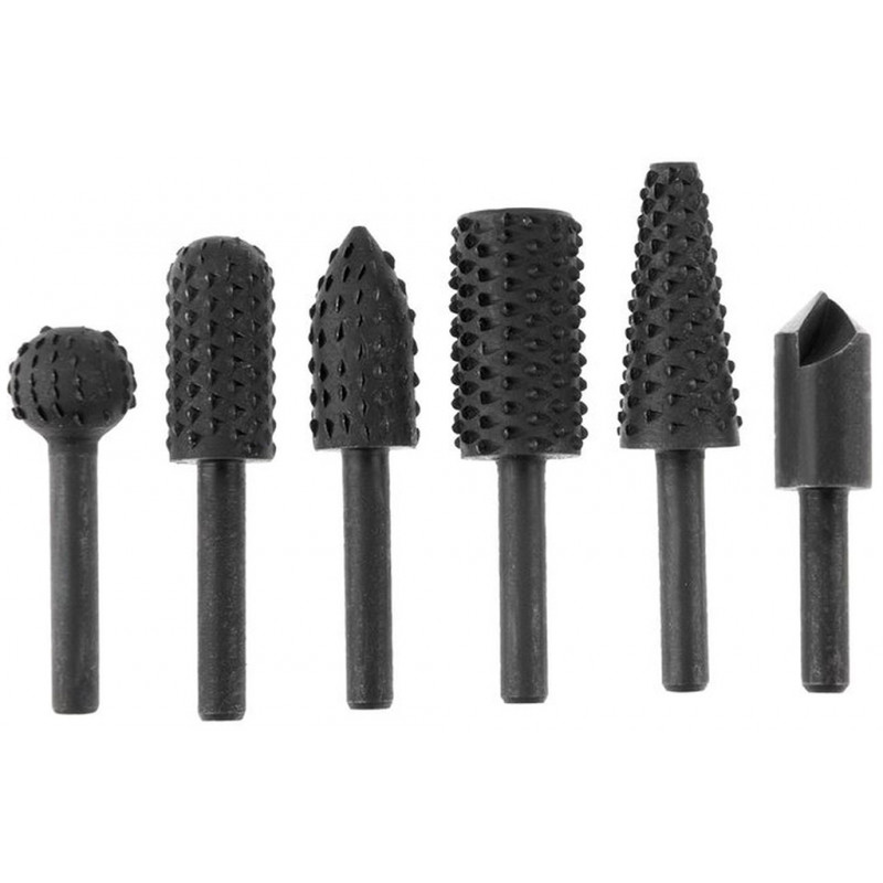 Termék leírás:5 db ráspolyfej és 1 db süllyesztő. Használható: felsőmaróba, élmaróba vagy fórógépbe fogva, faanyagok, műanyag- és gumi felületek megmunkálására.