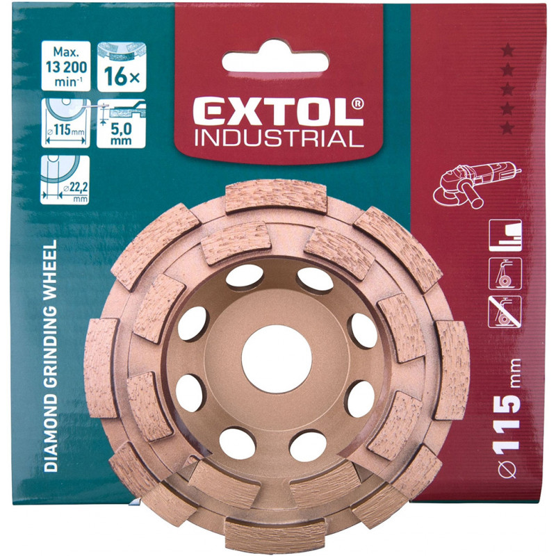 - Pro odeslání do Česka navštivte EXTOL INDUSTRIAL kotouč diamantový brusný dvouřadý, 115x22,2mm 8703121