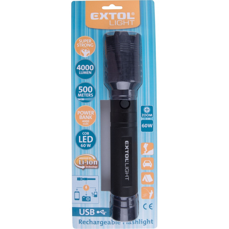 - Pro odeslání do Česka navštivte EXTOL LIGHT svítilna 4000lm COB, zoom, USB nabíjení s powerbankou, 60W COB LED 43136