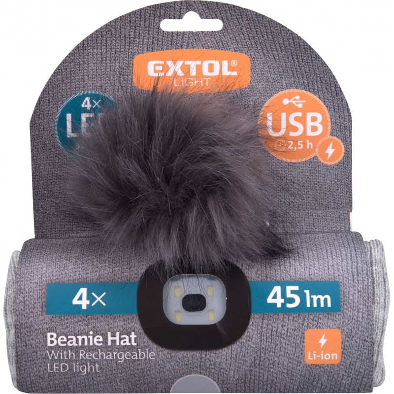 - Pro odeslání do Česka navštivte EXTOL LIGHT čepice s čelovkou 4x45lm, USB nabíjení, světle šedá s bambulí, univerzální velikost 43465