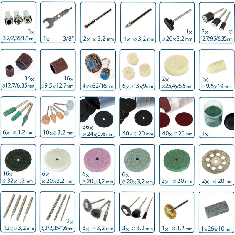 EXTOL mini köszörű-, csiszoló- és polírozó klt. 3,2 mm befogás, 276 db, 903772
