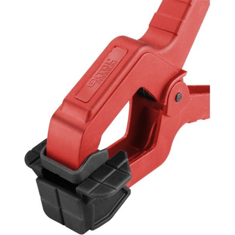 Robusztus, tartós és könnyű kialakítású kiváló minőségű műanyagból készült. Extra erős rugó, fogazott forgatható pofák, a tárgyak felületén sem hagy nyomot. Különböző típusú pofák: klasszikus, "V" alakú cső rögzítéshez átmérő 6-50mm, "Y" alakú kiszélesedő nagyobb tárgyakhoz, 2 db 45 fokos léc illesztése