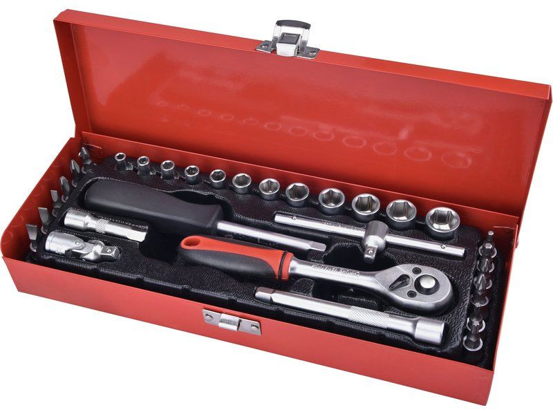 Extol Premium racsnis dugókulcs készlet szállítása praktikus fém dobozban történik, mely lehetővé teszi a szerszámok biztonságos tárolását isA készleteket és kiegészítőket profi felhasználásra készítették a gyorsasági, ergonómiai, gazdaságossági, pontossági követelményeknek megfelelően