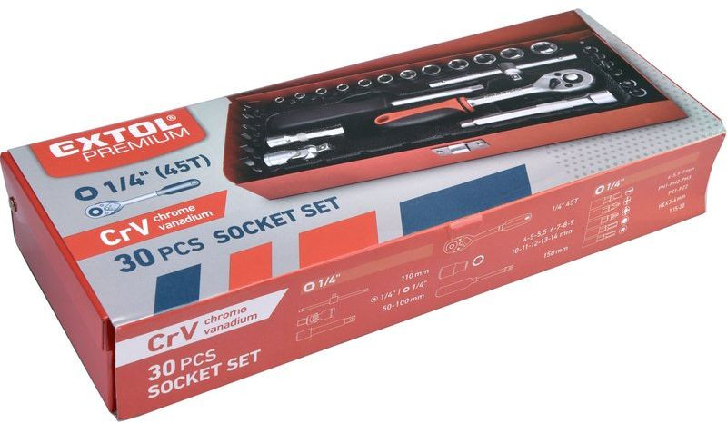- Aby wysłać do Polski odwiedź EXTOL PREMIUM Zestaw kluczy nasadowych 30szt, 1/4" 8818361