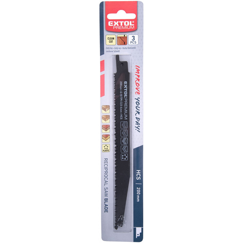 - Pro odeslání do Česka navštivte EXTOL PREMIUM plátky do pily ocasky 3ks, 200x19x1,25mm, HCS 8806101