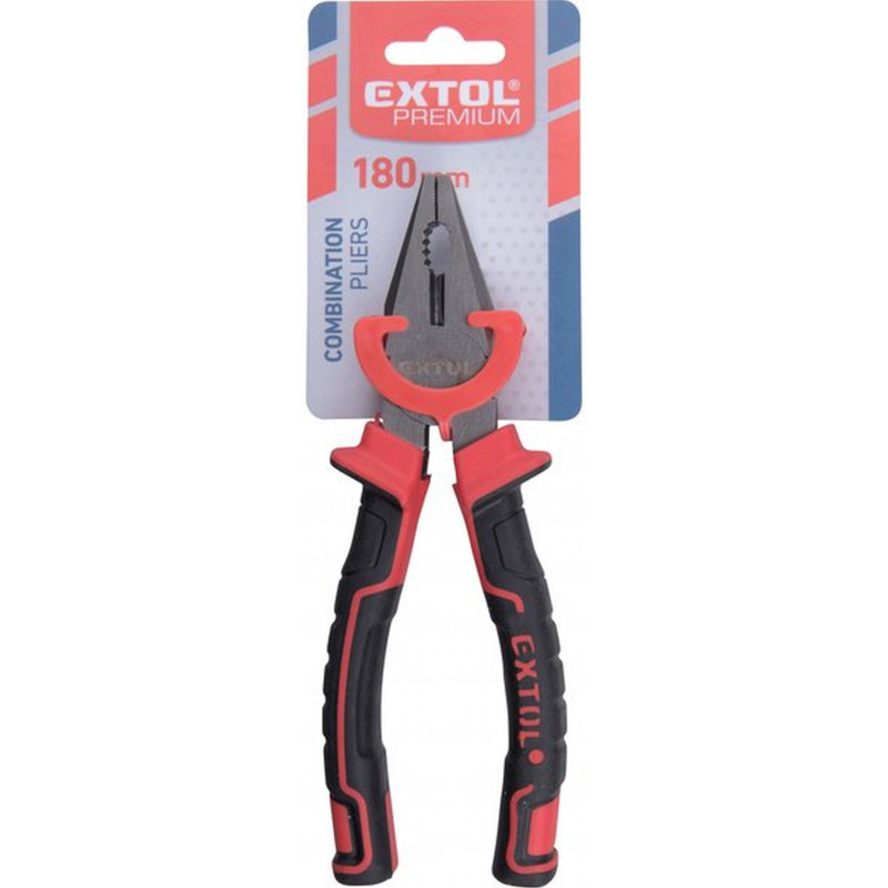 EXTOL PREMIUM kombinált fogó, 180 mm 8813182Rendkívül kemény, a korrózió ellen felületkezeléssel védett acélból készült kombináltfogó. Kiváló minőségű műanyagból készült, ergonómikus kialakítású, lágy TPR csúszásgátló gumival ellátott markolat.
