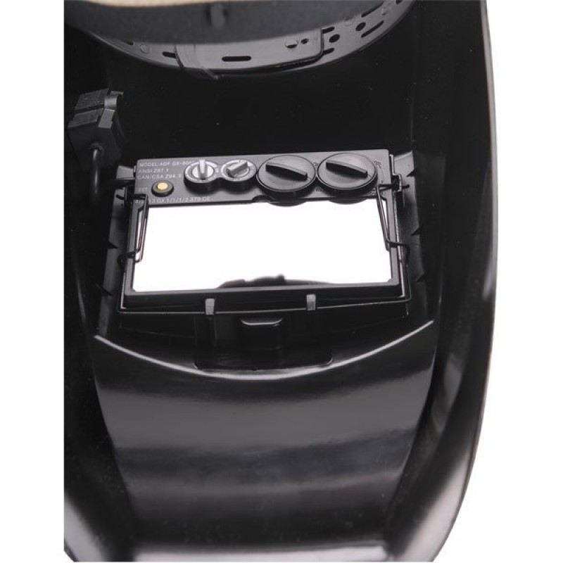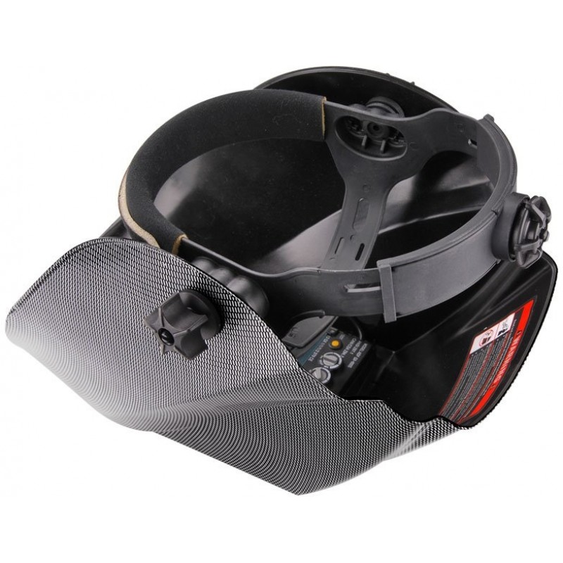 A szem és az arc védelmére szolgál hegesztéskor és köszörüléskor. A speciális szűrőnek köszönhetően a pajzs használója folyamatosan lát munkavégzés közben, nem kell a pajzsot felemelnie, ez pedig könnyebb és gyorsabb munkavégzést tesz lehetővé (az önsötétedő szűrő automatikusan elsötétül az ív begyújtásakor, a hegesztés befejezésekor pedig ismét kivilágosodik). A szűrő elsötétedésének mértékét az alkalmazott hegesztőáram folyamatosan szabályozza, a szűrő kivilágosodásának sebessége pedig beállítható. A súlypont helyzete a pajzs felemelésekor automatikusan alacsonyabbra kerül, ez csökkenti a használó terhelését és növeli a munkavégzés kényelmétnapelemes tápellátás+cserélhető elem (2db CR2032), érzékenység állítás, sötétítési állítás (hegesztési- köszörülési átváltó kapcsoló)