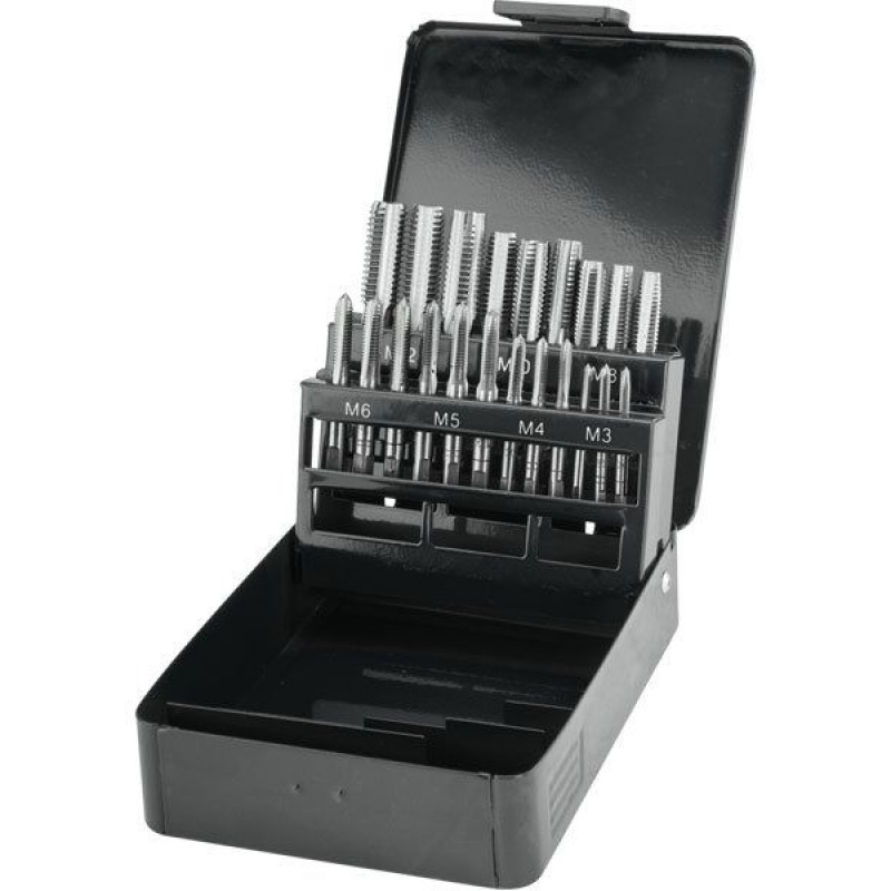 Menetfúró klt., kézi, fém dobozban; 21db, M3,4,5,6,8,10,12, jó minőségű szénacél, hajtóvas nélkül. Hajtóvas külön rendelhető: 8816605 cikkszámonTörekszünk a webáruházban megtalálható információk, termékleírások pontos és hiteles közlésére, olykor azonban ezek önhibánkon kívül tartalmazhatnak téves információkat. A képek csak tájékoztató jellegűek.