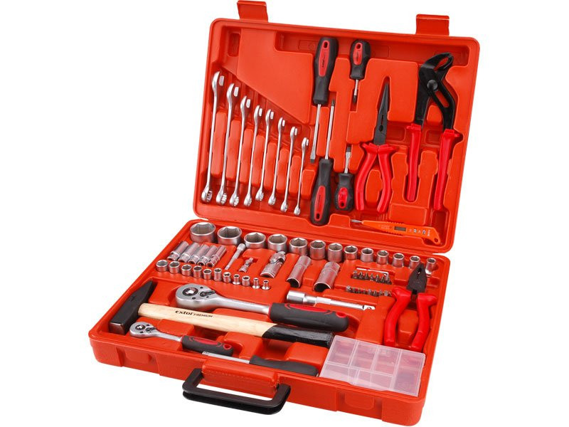 EXTOL PREMIUM szerszám és dugókulcs készlet, 73db 8818410A leggyakrabban használt fogó, csavarhúzó és kulcsok gazdag kombinációja, kiegészítve a lakatos kalapáccsal és a feszességmérővel. Műanyag tok az egyszerű szállításhoz. A kompakt és kiváló minőségű CrV acélalkatrészek miatt a készlet alkalmas mind otthoni, mind félig professzionális használatra, és kiválóan illeszkedik az autóskészlethez.