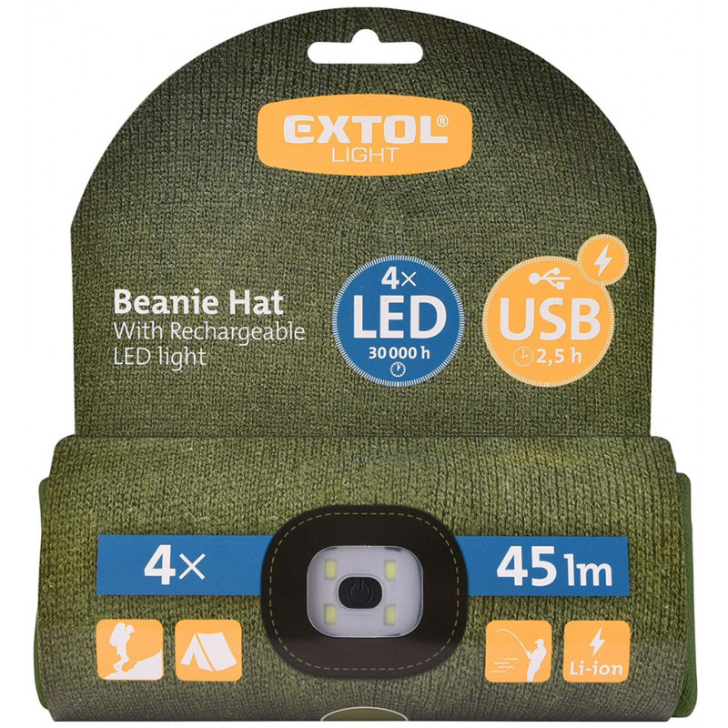 - Aby wysłać do Polski odwiedź EXTOL LIGHT Czapka z oświetleniem LED 4x45lm,USB, zielona, uniwersalny rozmiar 43191