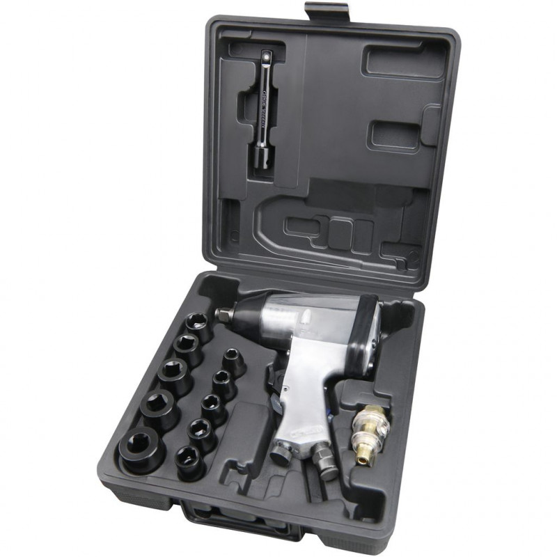 FIELDMANN FDAK 901511 pneumatikus ütvehúzó 50002606A gumiabroncsok cseréje sokaknak megterhelő feladat lehet. Használja a pneumatikus csavarhúzónkat, mely kellő nyomatékot biztosít a kerékcsavarok kitekeréséhez. A készlet tartalmaz 10 dugókulcsot is.