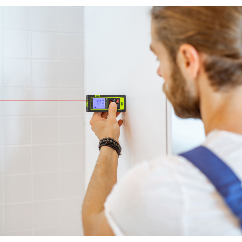 Mérőlézer 50m-ig. A lézeres távolság-, terület- és térfogatmérő remek segítséget nyújt egy épület, rekonstrukció kül- és beltéri tervezésénél. A mérő nemcsak a beépített vízmértéknek köszönhetően nagyon pontos, hanem 5 cm-től 50 m-es távolságok mérésére is használható. A csomag 3 db AAA ceruzaelemet tartalmaz.