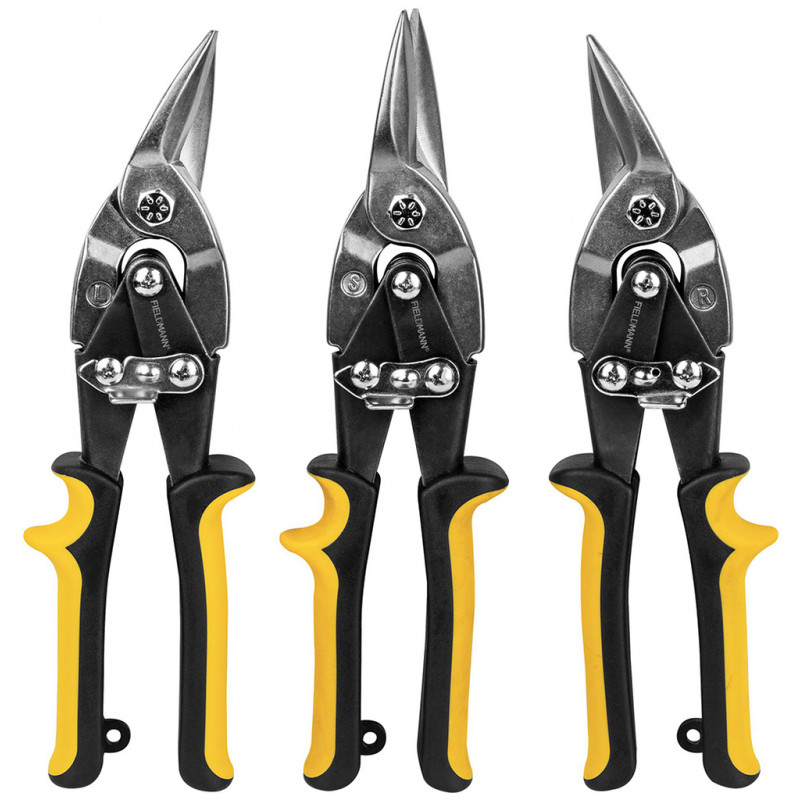 Kisebb munkákhoz a kertben, a műhelyben vagy a ház körül minden bizonnyal megtalálhatja a FIELDMANN fémlemez ollónak ezt a 3 darabos készletét. A készlet ollókat tartalmaz a lapok és kemény anyagok, csövek, fémek és más hasonló anyagok jobb, bal és egyenes vágásához. A masszív és ergonómikusan kialakított fogantyúk kényelmes fogást biztosítanak. A penge vezetéséhez jó minőségű kovácsolt acélt használtunk. Az olló hossza 250 mm, 0,4 kg / pc tömegnél.