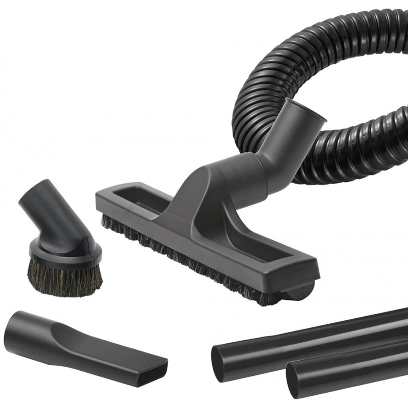 Multifunkciós szárazporszívó 1200 W teljesítménnyel, HEPA szűrővel és az eltömődést okozó, nagyobb méretű szennyeződések ellen védő kosárral. A védőkosár és a HEPA szűrő is egyszerűen eltávolítható, bármilyen segédeszköz használata nélkül. A 20 liter űrtartalmú, krómozott, görgőkkel ellátott gyűjtőtartály jelentős mennyiségű por és szennyeződés tárolására alkalmas. A porszívó fém szívócsövével és az alumínium kiegészítőkkel kifejezetten alkalmas hamu eltávolítására. A tartozékok között megtalálható műanyag szívócsővel, padló-szívófejjel, lapos szívótoldalékkal és körkefével a garázs, műhely, illetve az autó belseje is hatékonyan tisztán tartható.