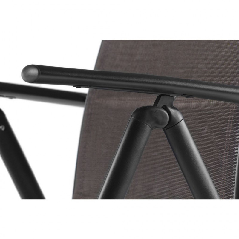 Exkluzív fém kerti szék , mely tökéletes kombinációj a stílusos modern megjelenésnek, és a kénylemes komfortnak. Tömör, mégis könnyű konstrukció, teljesen karbantartásmentes és rendkívül jól ellenáll az időjárás hatásainak. Az azonos szintű ellenállás érdekében a szövet felületek duplán varrott, rugalmas, szintetikus szövetből készültek. A luxus szintű megjelenést egészíti ki a szövet borítás puhasága, mely nem teszi szükségessé plussz párna használatát. A háttámla 5 különböző pozícióban állítható. A karbantartást nem igénylő szék, kellemes pihenést biztosít. 5 pozícióban állítható háttámla