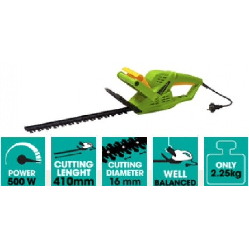 A Fieldmann FZN 2000-E egy nagyon könnyű elektromos sövényvágó. A működését egy 520 W teljesítményű motor biztosítja. Az FZN 2000E vezetőlécének 400 mm-es a hosszúsága és ez lehetővé teszi a díszbokrok és a legtöbb élősövény kényelmes formázását. A nagyobb biztonság érdekében az FZN2000 kései menetkapcsolóval vannak ellátva, ami megakadályozza, hogy önmaguktól bekapcsolódjanak. A biztonsági kés oldalain lekerekített, fokozatosan csökkenő méretű fogak találhatók, amelyek csökkentik a szerszám használat közben esetlegesen előforduló baleset következményeit. A Fieldmann FZN 2000-E vágókését alacsony viszkozitású olajjal ápolja használat után. A biztonságos tárolás érdekében a csomag része egy műanyag fedél a vezetőléc számára.