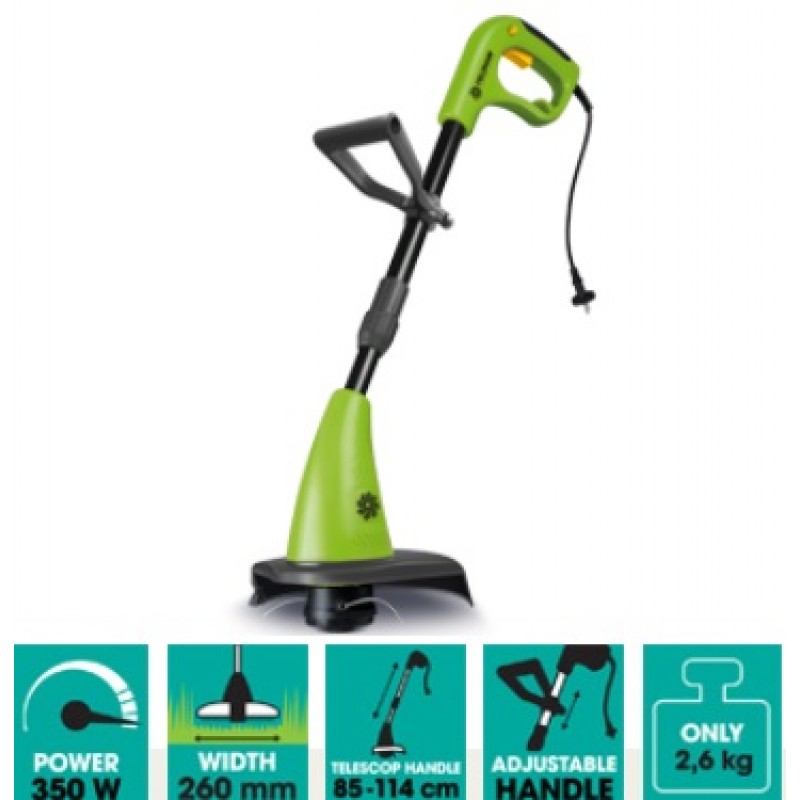 FIELDMANN FZS 2001-E elektromos fűkasza 50000112Az FZS 2001-E egy elektromos fűkasza, mely ideális minden olyan területhez, ahol nehezen vagy egyáltalán nincs lehetőség fűnyíróval való hozzáférésre. Az FZS2001 damilos szegélynyíró 350 W teljesítményű motorral lett felszerelve, a vágási átmérője pedig 260 mm. A vágódamilt egy fél automata rendszer adagolja. A damil hosszát a gép automatikusan állítja be. A csomag tartalmaz kb. 4 méter string fűkasza damilt feltekerve, mely már használatra kész. A tökéletes pázsithoz figyelembe kell venni annak szükségleteit is, ezért lett a Fieldmann FZS2001E felszerelve egy teleszkópos fogantyúval, melynek hossza 85 – 114 cm között állítható, így használatával a nagyobb munkák is kényelmesen, elvégezhetők.