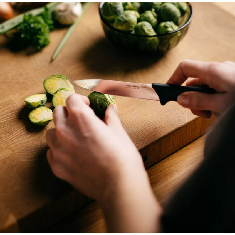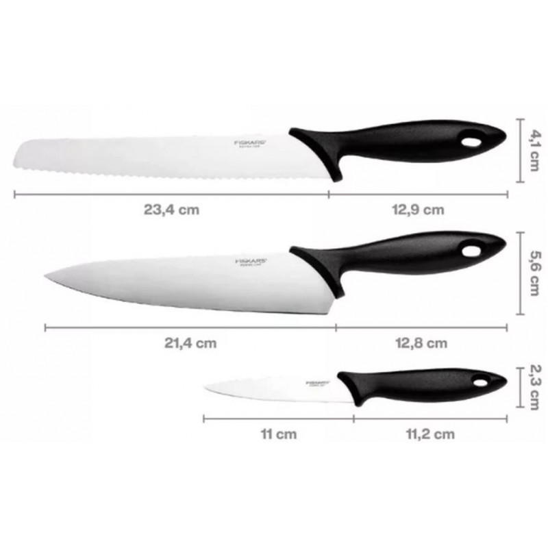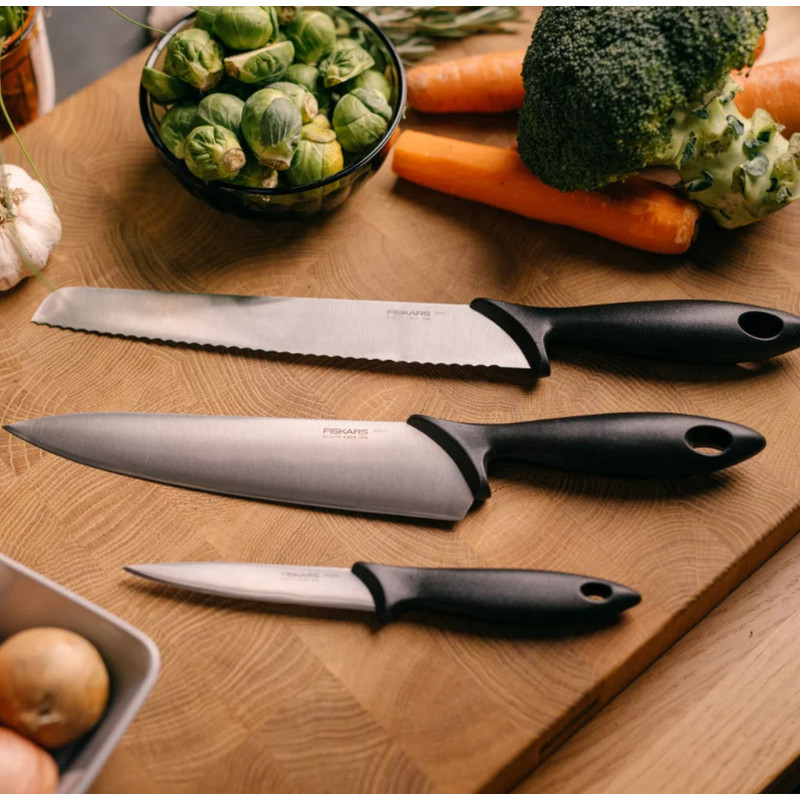 A Fiskars Essential 3 darabos kezdő készlet ideális megoldás, ha megbízható, praktikus és tartós konyhai eszközökre van szüksége. A készletben található három kés együtt biztosítja a hatékony és kényelmes munkát, miközben maximalizálja a pengék élettartamát.