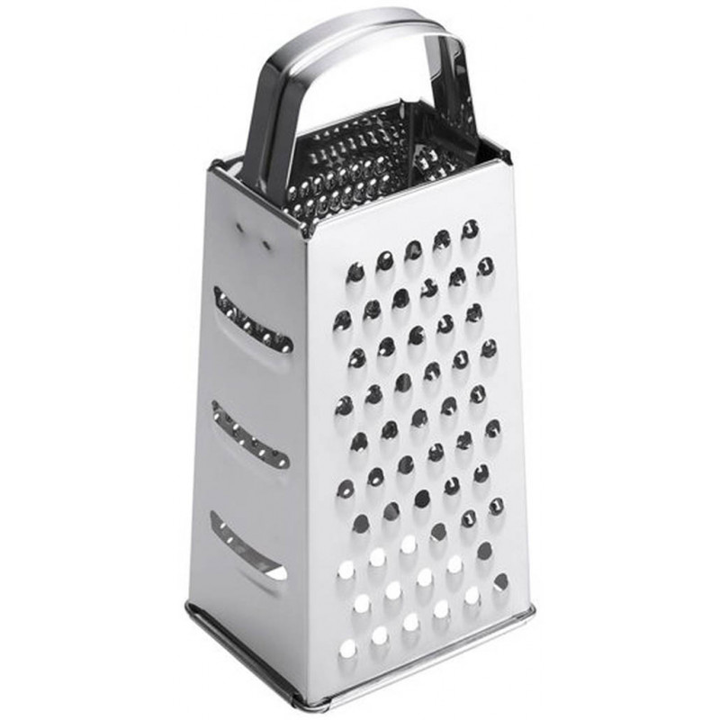 Klasszikus négyszög alakú reszelő az összes hagyományos reszelési funkcióval, a tetején nagy méretű fogantyúval.Jellemzők: