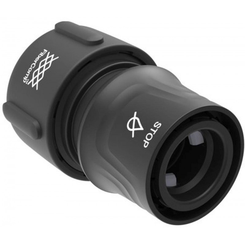A Fiskars 1054790 FiberComp™ gyorscsatlakozó lehetővé teszi a kerti tömlő és az öntözőfejek, pisztolyok vagy egyéb tömlővég-alkatrészek gyors és egyszerű, szerszám nélküli cseréjét anélkül, hogy el kellene zárni a vízellátást. A beépített stop-mechanizmus automatikusan elzárja a vízáramlást, amint az alkatrész leválasztásra kerül, így megelőzhető a vízszivárgás vagy pazarlás. A csatlakozó teste üvegszállal erősített poliamid (FiberComp™) anyagból készült, ami kétszer olyan tartós, mint a hagyományos műanyag csatlakozók, és kiválóan bírja a hideg időjárást is.