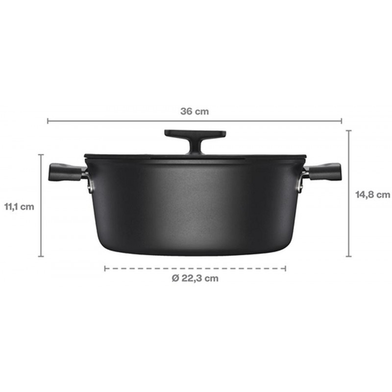 A Fiskars Hard Face Fazék fedővel 1075527 egy 5 literes űrtartalmú edény, amely kiválóan alkalmas nagyobb mennyiségű leves, pörkölt, vagy összetett ételek készítésére. A 22 cm átmérőjű edény teste 100%-ban újrahasznosított alumíniumból készült, és a rendkívül tartós Ceratec™ Superior kerámia tapadásmentes bevonattal rendelkezik.