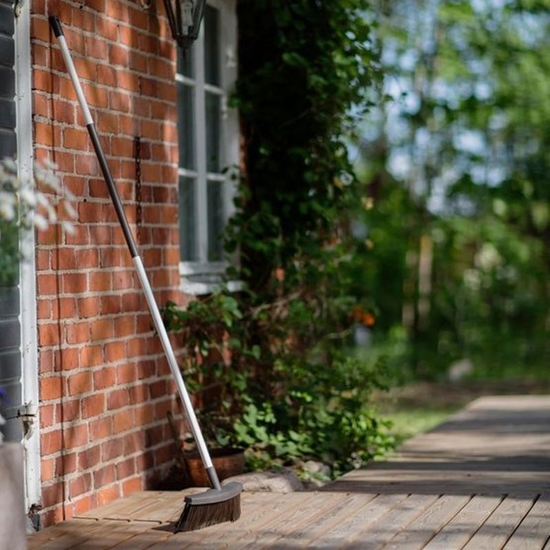 - Egy seprű, ami alkalmas teraszok, erkélyek és egyéb kültéri területek takarításához.