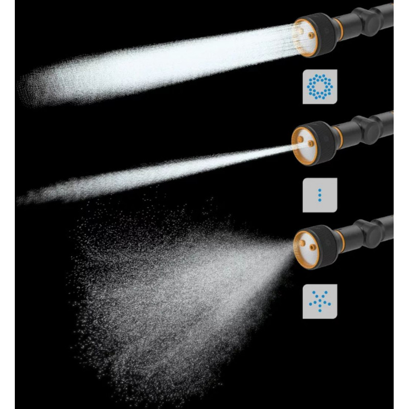 A Fiskars Comfort öntözőrúd, 3-funkciós, markolatvezérlésű ideális választás azok számára, akik hatékony és kényelmes öntözési megoldást keresnek. Ez az öntözőrúd három szórási mintát kínál – sugár, köd és zuhany –, amelyeket könnyen lehet váltani a SoftGrip™ fúvóka forgatásával. Az ergonómikus elülső be-/kikapcsoló fokozatmentesen állítható és reteszelhető, így hosszabb ideig is kényelmesen használható.