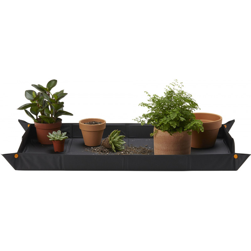 A Fiskars Összehajtható Ültetőszőnyeg védi az asztalokat és más munkafelületeket, valamint gyors és egyszerű tisztítást tesz lehetővé. Összehajtható a kompakt tárolás érdekében, a bepattintható sarkok pedig szilárdan tartják az oldalakat, segítve a talaj és más szétszóródott anyagok megtartását. A szőnyeg nagyméretű, 82,5 cm x 44,5 cm-re nyíló munkaterületet biztosít, tartós, vízálló nejlon külső réteggel és erős belső panelekkel, amelyek többféleképpen összehajthatók, lehetővé téve, hogy a szétsszóródott anyagokat szépen visszaöntsd a zsákba, így minimalizálva a hulladékot.