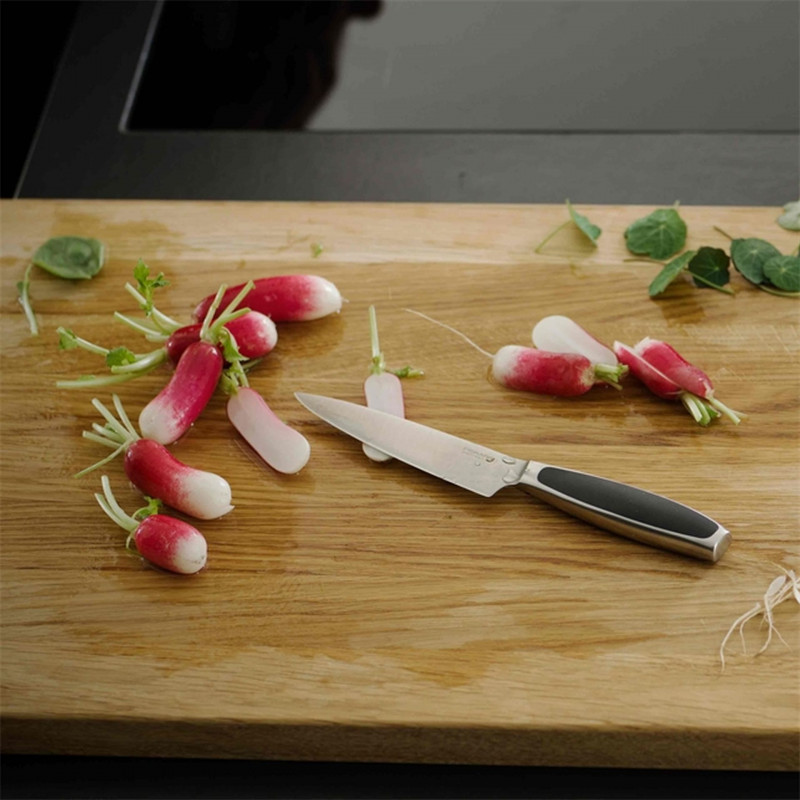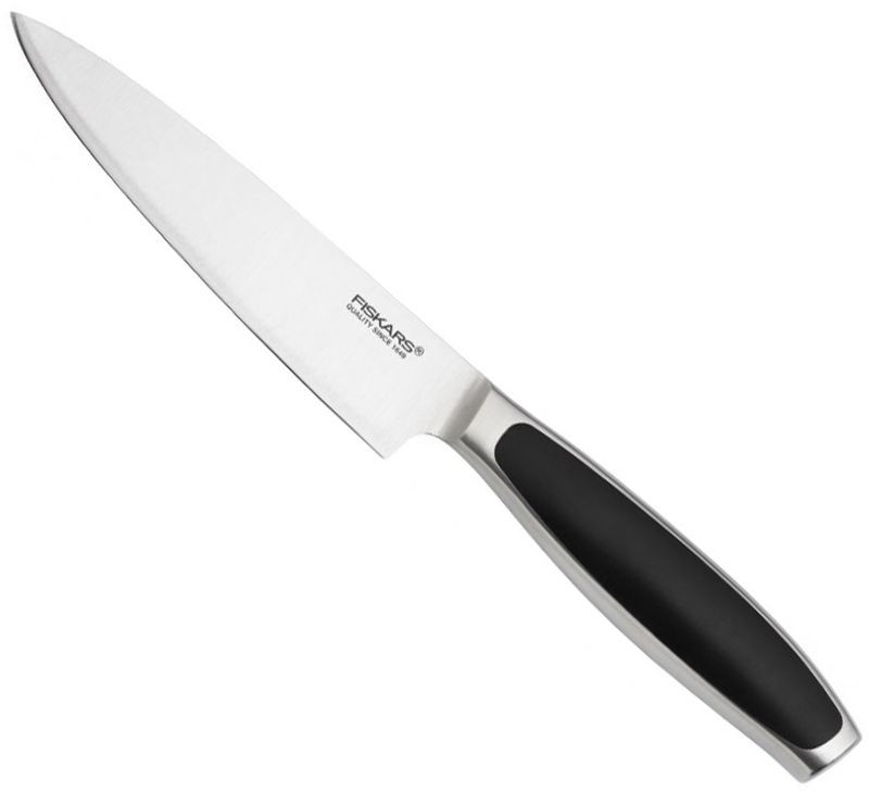 A Fiskars márkás, 12 cm-es Royal szeletelő kés gyümölcs és zöldség effektív és kényelmes szeletelésére ideális. Formázott fogantyújának köszönhetően kiválóan illeszkedik a kézhez. Egy darabból, minőségi német acélból készült.