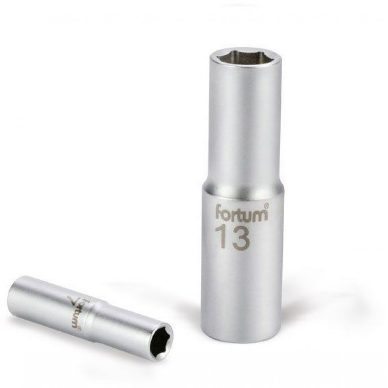 FORTUM ipari dugófej, hosszított, 1/2", 19mm, 61CrV5, mattkróm, 77mm hosszú 4700519A Fortum dugókulcs és dugófej anyaga az acél legmagasabb osztályába tartozó 61CrV5 króm-vanádium acél, melyet edzéssel, a sarkokon extra edzéssel tesznek ellenállóvá.