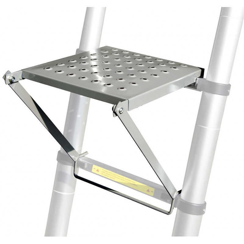 G21 fém dobogó 6390380Dobogó a G21 teleszkópos létrákhoz. A termék megkönnyíti a munkát a magasban, a tárolási platform a létra bármely fokára illeszkedik, így segítségével másodperceken belül létrehozható egy tároló szerszámai számára. A dobogó összecsukható, így elég csak a létrához csomagolni szállításkor.