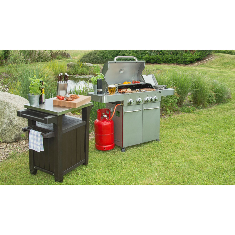 - mozgás - 4 kerék fékkel a grill egyszerű áthelyezése és az egy helyben maradása érdekében