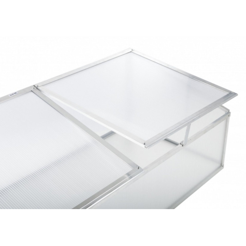 A konstrukció eloxált alumínium profilokból készült, így ellenáll aszélnek és az esőnek is. Az alumínium profilok szilárdak, így igenellenállóak, de nagyon könnyűek is, így a melegágyát bármikor könnyedénáthelyezheti.