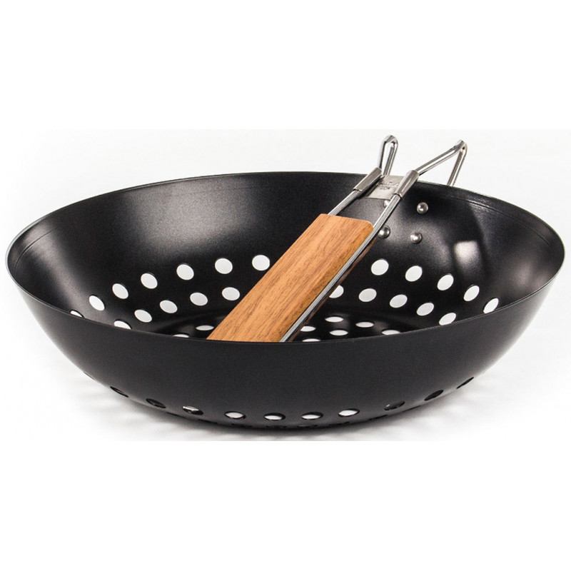 Szerezze be a tapadásmentes, 28 cm átmérőjű G21 grillserpenyőt grillezéshez. Használható ugyanúgy a faszenes grillen és a gázgrillen is. A kerek formájú grillserpenyő teljes felületén 10 mm átmérőjű lyukak vannak. Ennek köszönhetően a zöldségek és a húsok egyenletesen grilleződnek meg, ugyanakkor a megfelelő méretű lyukaknak köszönhetően az étel nem potyog a rostok közé.