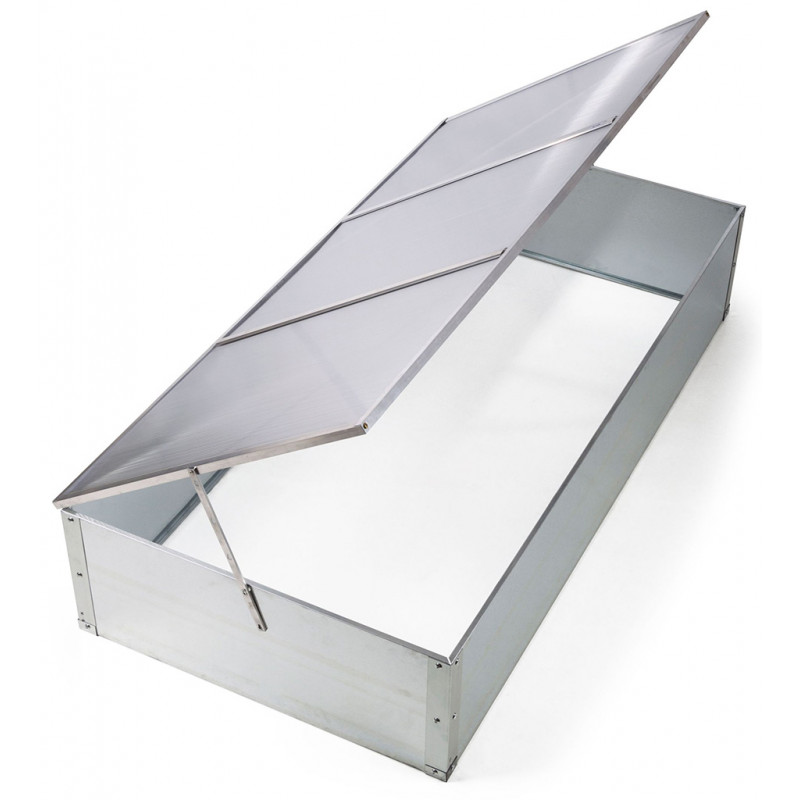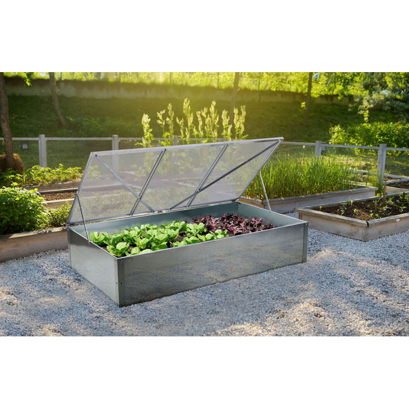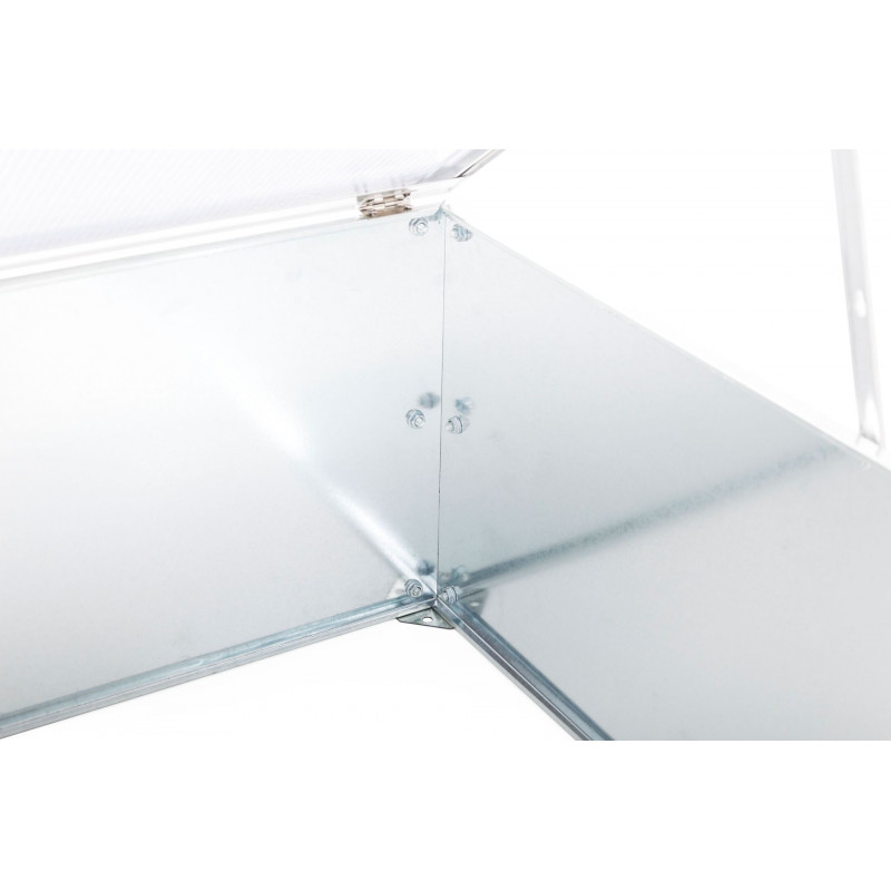 A felső alumíniumkeret 4 mm-es polikarbonát-töltelékkel kényelmes hozzáférést biztosít az ültetéshez és az ültetett növények gondozásához, a kívánt helyzetbe való állítható beállításnak köszönhetően.