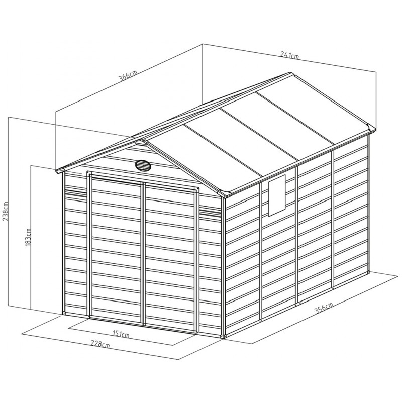 A G21 kerti ház rozsdamentes acélből készült alapból, rozsdamentes tetőburkolatból, 1,5 mm vastag műanyag oszlopokból és 12 mm vastag külső műanyag panelekből áll. A kerti ház tetője 60kg/m2-es terhelésnek is ellenáll. A házba vajó bejutást a 120 cm széles és 183 cm magas kétajtós bejárat biztosítja.