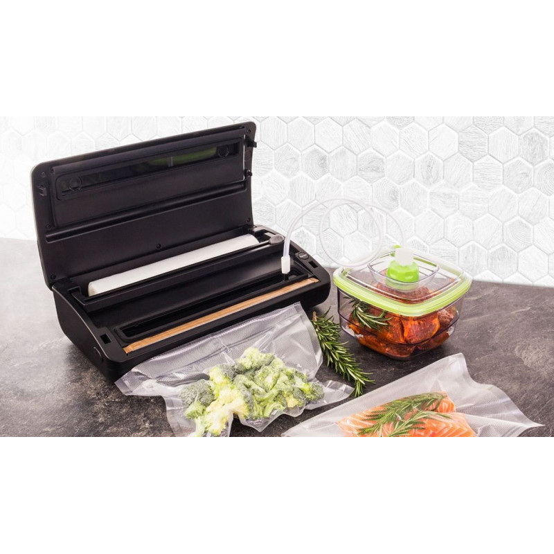 Vákuumcsomagoló tartállyal a tekercseknek és vágóval ellátott G21 Nefrit már az első használat után elnyeri tetszését. Kicsi, ugyanakkor nagyon erős és megbízható. A dupla szivattyú biztosítja a tökéletes légelszívást, és a speciális forrasztás dupla huzalokkal megbízhatóan lezárja a csomagolást. Használhatja az élelmiszerek eltarthatóságának meghosszabbítása, lefagyasztása vagy sous-vide főzés céljából. A vákuumban lévő összetevőket így megvédi a levegő hatásaitól. Az eredmény egy ízében tökéletes, gazdag aromájú, színű a természetes savakkal teli étel.
