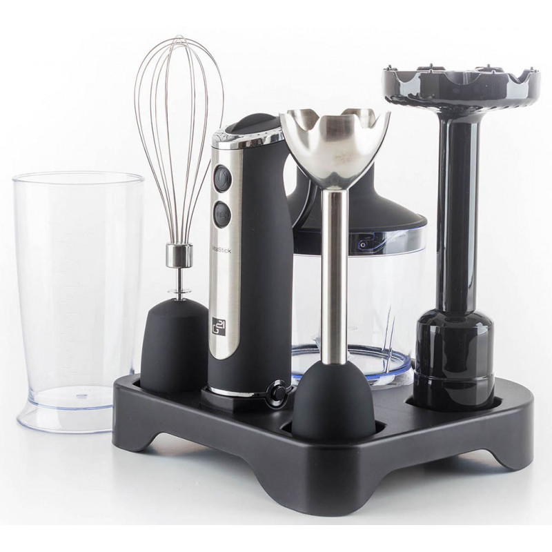 A VitalStick mixer gazdag tartozékokban. Az alap botmixert helyettesítheti rozsdamentes acél habverővel, mellyel mennyei habot készíthet. Hű társai az átlátszó tárolók. Természetesen minden kiegészítőt lehet mosni mosogatógépben.