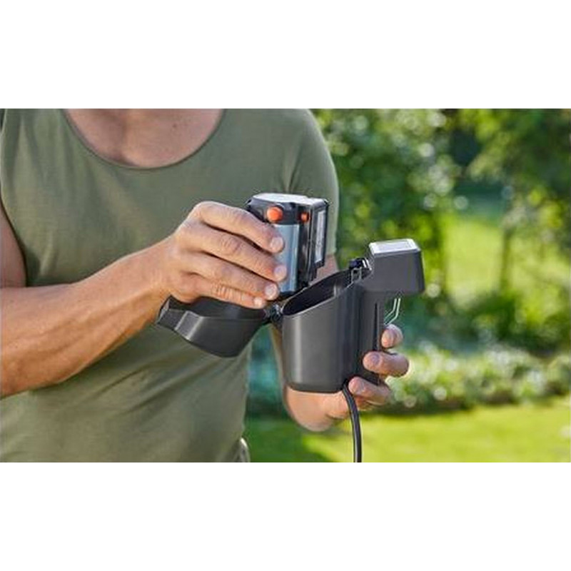 GARDENA 2000/2 Li-18 akkumulátoros merülőszivattyú készlet 1748-20A GARDENA 2000/2 Li-18 tisztavíz-merülőszivattyújával a víz igény szerint ki- vagy beszivattyúzható. Legyen a víz bárhol, ha nincs is a közelben áramcsatlakozás, a szivattyú abszolút rugalmasan használható, mivel lítium-ion akkumulátorral üzemel. A készlet tartalmazza az akkumulátort és a töltőket. Az Univerzális merülőszivattyú könnyen karbantartható, 18 V-os GARDENA rendszerakkumulátorral üzemel, amelyet bármikor, memóriahatás nélkül újra lehet tölteni. A nagy, 19 mm-es (3/4”) és 32 mm-es (1”) tömlőcsatlakozásnak köszönhetően akár 860 liternyi vizet is fel lehet szívatni egyetlen töltéssel. A szivattyú kisebb volumenű munkálatokra is használható, pl. gyerekmedencék kiürítésére.