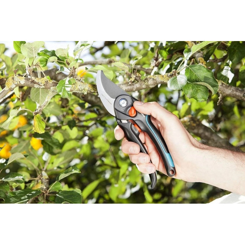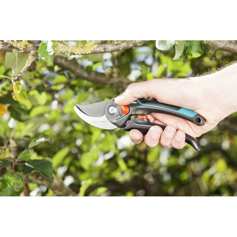 A Gardena B/S-XL metszőolló sokoldalú kerti munkaeszköz, amely ideális virágok, fiatal hajtások és friss fa vágásához. A bypass-vágás elve szerint a pengék egymáshoz közel csúsznak, így tiszta, növénykímélő vágást biztosítanak. A markolat variálható szélességű, így különböző kézméretekhez is kényelmesen beállítható. A kényelmes fogásról az ergonomikus kialakítású, üléspárnázott markolat gondoskodik, amely csökkenti a kéz illetve a csukló túlterhelését. A fogó a nagyobb átmérőjű, akár 24 mm vastagságú ágak vágására is alkalmas, így jó választás bokrok, sövények és kisebb fák gondozásához.