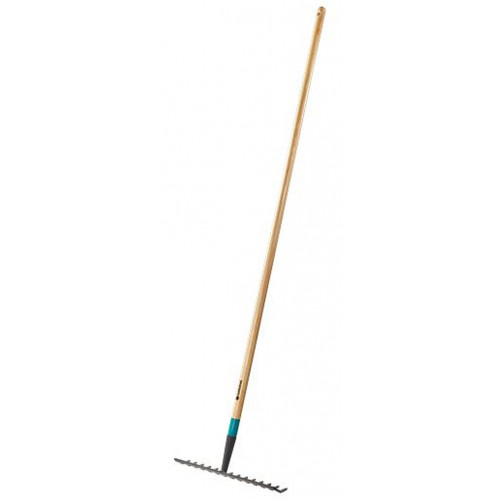 A GARDENA ClassicLine gereblye egy praktikus, sokoldalú gereblye, amely gereblyézéshez, egyengetéshez és talajmunkához egyaránt alkalmas. A gereblye munkaszélessége 38 cm. A lakkozott fenyőfa nyél 100%-ban FSC® tanúsítvánnyal rendelkezik.