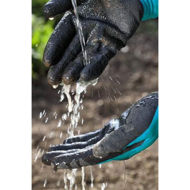 GARDENA kerti kesztyű ültetéshez 10 / XL méret 0208-20A GARDENA ültetéshez való kerti kesztyűi speciális védelmet nyújtanak, amikor szükség van a jó érzékelésre és nedvesség elleni védelemre. A tenyér- és az ujjbegy részek csúszásmentes és víztaszító latex bevonata tökéletest fogást biztosít munka közben. Mindezek mellet a latex anyagnak köszönhetően a keze tiszta és száraz marad. Még akkor is, amikor nedves földbe ültet. Az ujjbegy részek megerősítései védenek a szennyeződés- és nedvesség ellen, de a tapintás érzete megmarad. Az elasztikus szövésű anyagnak köszönhetően a kesztyű tökéletesen illeszkedik, kényelmes a viselete és jól lélegzik. Ez egyet jelent azzal, hogy nem izzad többé a kesztyűben a keze.