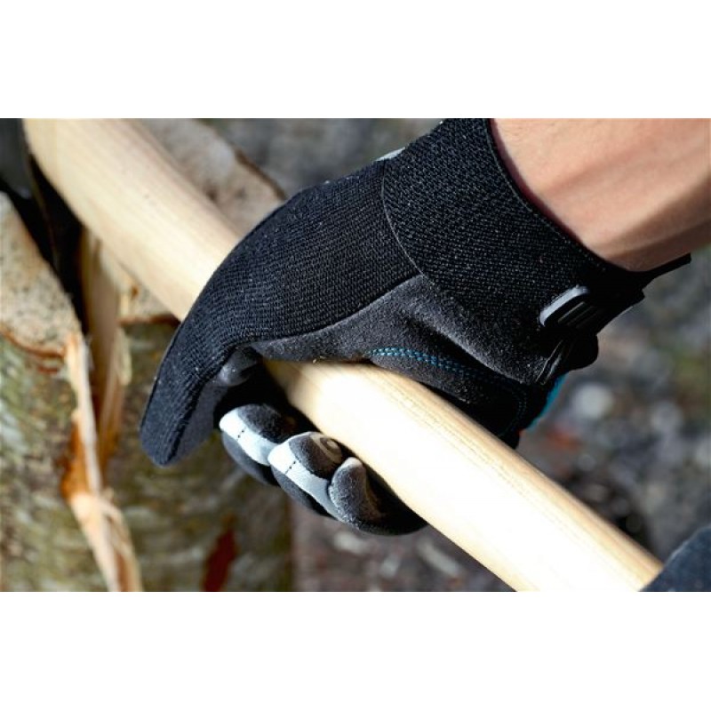 GARDENA kesztyű kerti szerszámokhoz 10/XL 0215-20A GARDENA kerti szárszámokhoz tervezett kesztyűjével biztonságosan tud dolgozni a szerszámokkal. A szerszámok erős, csúszásmentes tartása az innovatív ujjbegyekkel biztosított. A tenyér rész ütéscsillapító párnái kényelmes munkát garantálnak – főleg a mechanikus és motor meghajtású szerszámok munka közbeni visszaütéseinek csillapítása a lényeg. A speciálisan kialakított hüvelykujj résznek köszönhetően a kesztyű tökéletesen illeszkedik, hosszabb az élettartalma és biztonságosabban lehet vele fogni. Különösen, amikor pl. fejszével, sövénynyíróval, vagy ágvágóval dolgozik. Az egész kesztyű speciális, légáteresztő anyagból készült, mely megelőzi, hogy a kesztyűbe izzadjon a keze. Ha ezen felül megizzadna a munka közben, a kézfej résszel az izzadság letörölhető. A robusztus mandzsetta állítható, és véd a sérülésektől, szennyeződésektől.