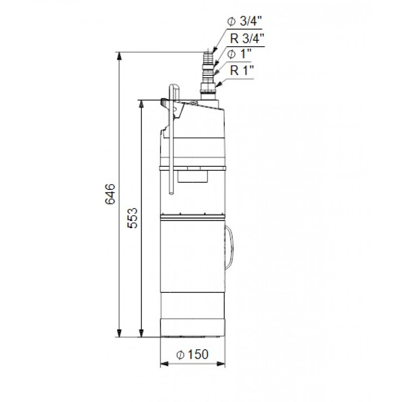 A SBA 3-45 M fel van szerelve egy 15 m tápkábellel, a maximális telepítési mélysége 10 m a vízszint alatt, ahol a folyadékhőmérséklet tartománya 0 °C és 40 °C közötti.