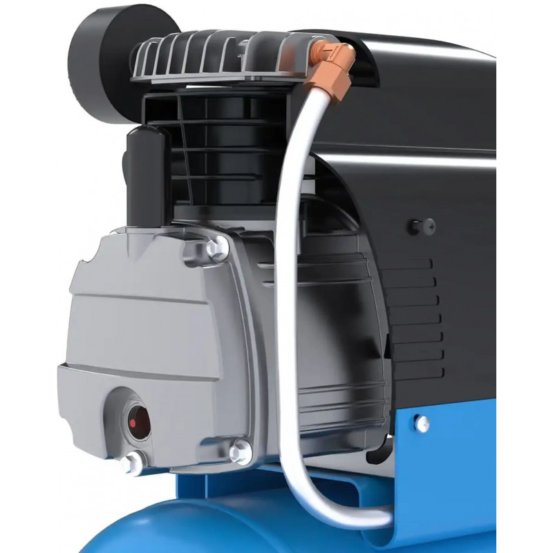 A kompresszor biztonságos működését biztonsági szelep, visszacsapó szelep és kondenzvíz-leeresztő csavar biztosítja. A beépített levegőszűrő védi a szerkezetet a szennyeződésektől, növelve az élettartamot.