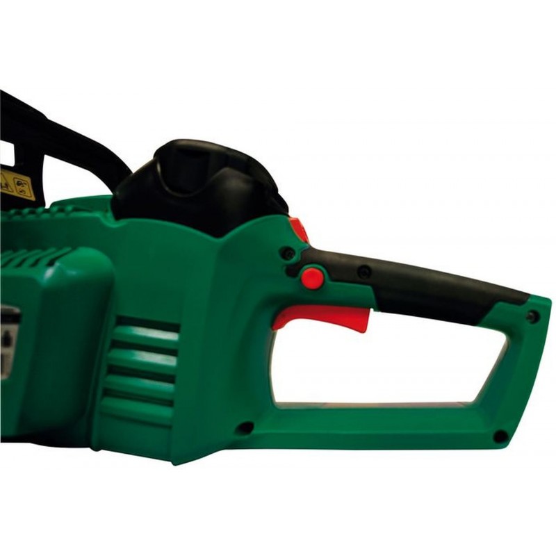 A lánc kenéséről integrált olajpumpa gondoskodik. SDS technológiás láncfeszítéssel és elektromos láncfékkel ellátva. A 3 Ah litium akkumulátor teljes töltöttség esetén kb. 100 vágást tesz lehetővé egy 10 cm-es átmérőjű rönk esetén. A csomag tartalmazza az akkut, a lapot és a láncot is!